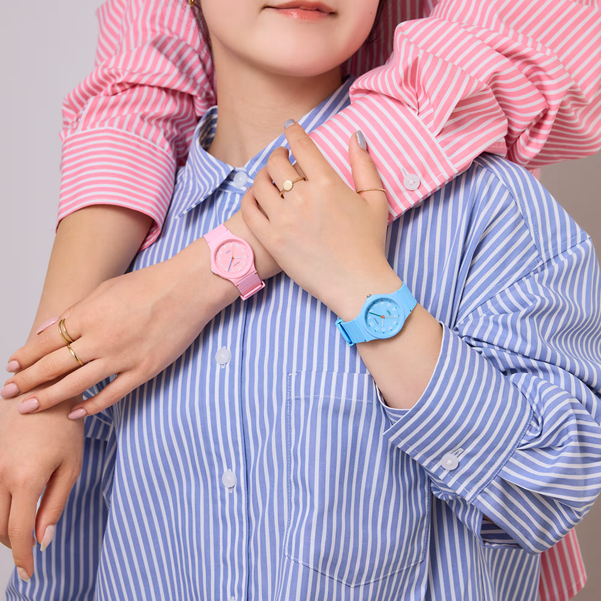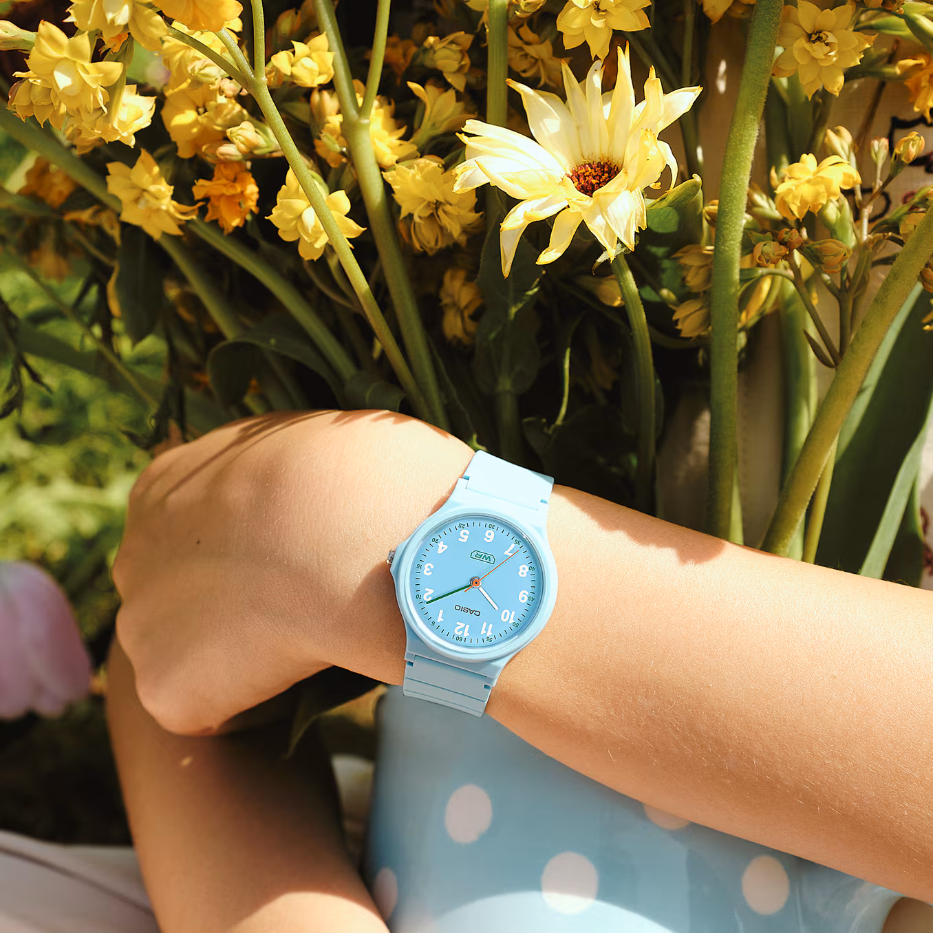 صفحه این مدل به رنگ آبی ملایم طراحی شده که جلوهای تازه، زنانه و شاد به آن میبخشد. قاب رزینی مشکی در کنار بند رزینی زیستپایه، کنتراست زیبایی ایجاد کرده و باعث شده این مدل با استایلهای روزمره و رسمی هماهنگ باشد. اندازه قاب 36.1 × 31.5 × 7.8 میلیمتر و وزن بسیار سبک ۱۷ گرم، استفاده از آن را حتی برای ساعتهای طولانی بدون ایجاد خستگی ممکن میکند.
