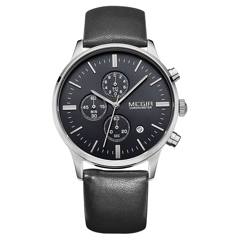 ساعت مچی مردانه مگیر MEGIR ML2011GBK‑1 از جدیدترین طراحی‌های سری ML محسوب می‌شود که با رنگ‌بندی مشکی–نقره‌ای، صفحه‌ی درخشان و نمایشگرهای فرعی ساعتی، در میان ساعت‌های هم‌رده درخشیده است. این ساعت نه‌تنها برای استایل روزمره، بلکه برای محیط‌های کاری و مجالس رسمی نیز انتخابی دقیق و هوشمندانه محسوب می‌شود.