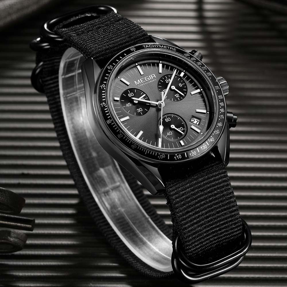 ساعت مچی مردانه مگیر MEGIR ML2247G-BK-1 مدلی شیک و بادوام از برند نامآشنای مگیر است که بهخوبی تلفیقی از طراحی اسپرت-نظامی و ظرافت مدرن را به نمایش میگذارد. این ساعت برای آقایانی که میخواهند در هر موقعیتی استایل حرفهای و جذاب داشته باشند، گزینهای ایدهآل است.
