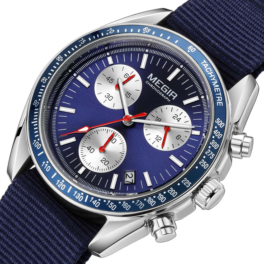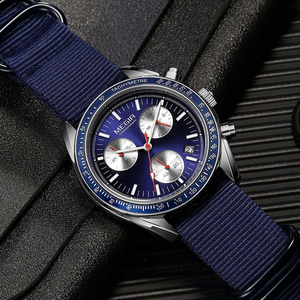 ساعت مچی مردانه مگیر MEGIR ML2247GBE-2N7 دارای سیستم کرونوگراف است که شامل سه صفحه کوچک برای اندازهگیری دقیق زمان میشود. این قابلیت به شما امکان میدهد رویدادها و فعالیتهای ورزشی یا کاری را با دقت ثانیه اندازهگیری کنید.