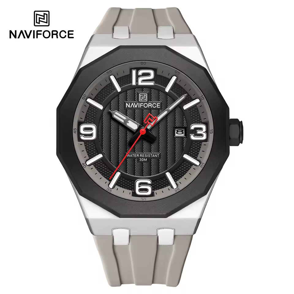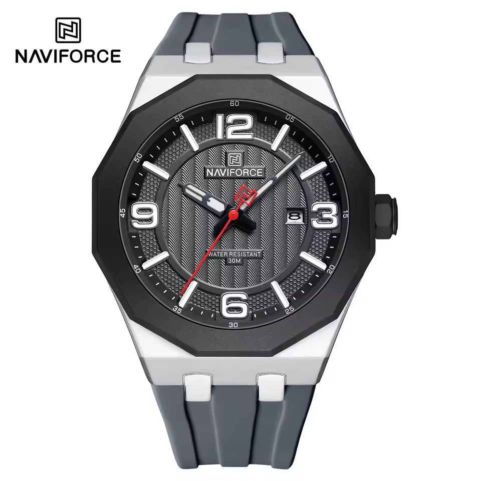 ساعت مچی مردانه نیوی فورس NAVIFORCE NF8079 انتخابی هوشمندانه برای کسانی است که به دنبال ساعتی با طراحی قدرتمند، قابلیتهای روزمره، دوام بالا و قیمت مناسب هستند. این مدل بهراحتی میتواند هم در محل کار و هم در تفریحات روزانه نقش یک همراه شیک و کاربردی را ایفا کند. با طراحی اسپرت-مدرن و امکاناتی همچون تاریخ، شبتاب و مقاومت در برابر آب، ساعت NF8079 نیازهای اکثر کاربران را برآورده خواهد کرد.