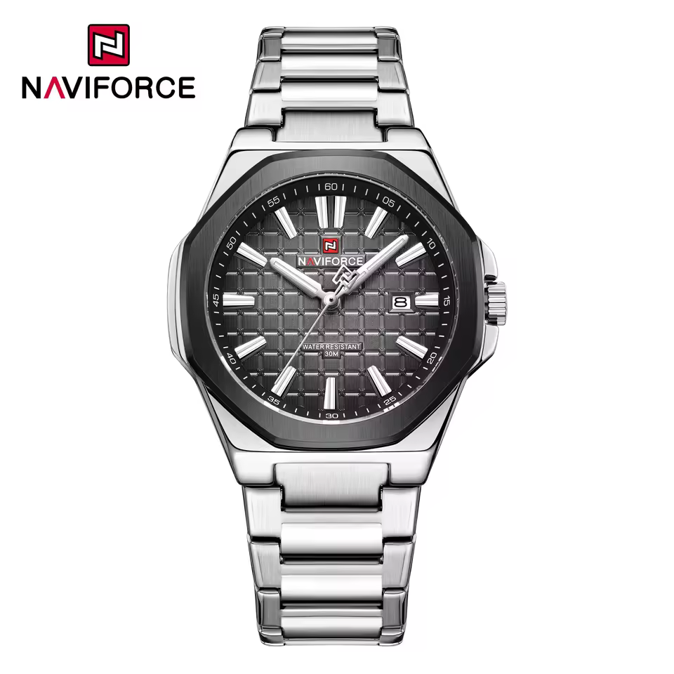 اگر به دنبال ساعتی هستید که هم ظاهر شیک و پرجلوه داشته باشد و هم عملکرد دقیق و امکانات کاربردی ارائه دهد، ساعت مچی مردانه نیوی فورس NAVIFORCE NF9258 یکی از بهترین انتخابهای شماست. این مدل ترکیبی از فناوری، طراحی لوکس و دوام بالا است و میتواند هم در لحظات رسمی و هم روزمره، همراهی بینقص برای شما باشد.