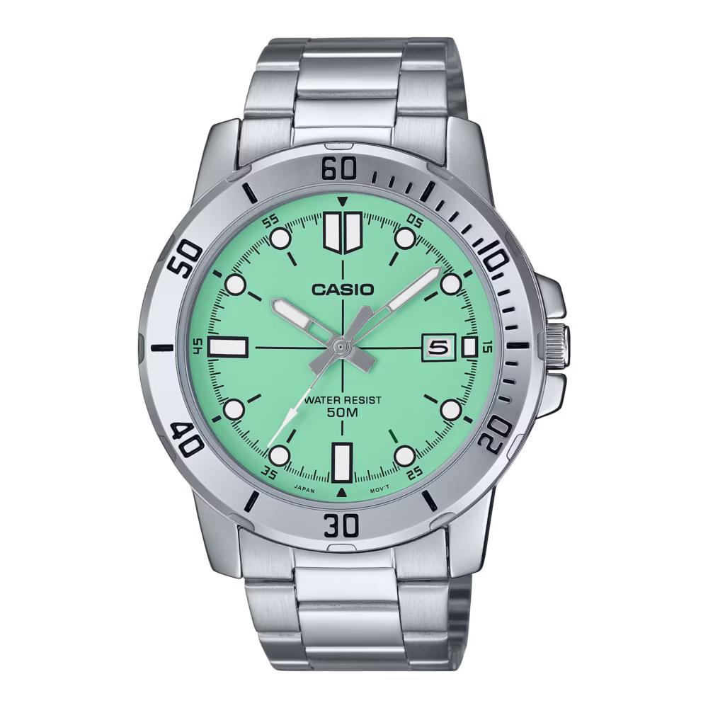 اگر بهدنبال یک ساعت فلزی لوکس با ظاهری اسپرت، صفحهای رنگی خاص و کیفیت ساخت استثنایی هستید، ساعت مچی مردانه کاسیو CASIO MTP‑VD01D‑3E1VUDF انتخابی ایدهآل برای شماست. طراحی دقیق ژاپنی، صفحه سبز‑زمردی چشمنواز و بدنهی استیل صیقلی، این مدل را به یکی از پرفروشترین ساعتهای مردانه کاسیو در دستهی کلاسیک‑اسپرت تبدیل کرده است.