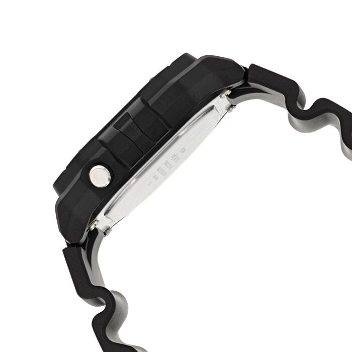 بدنه و بند این ساعت از رزین مقاوم ساخته شده که علاوه بر دوام بالا، به سبکی و راحتی آن کمک میکند. رنگ مشکی مات، حالتی کلاسیک و جدی به این مدل بخشیده و با تیپهای اسپرت، خیابانی و حتی برخی لباسهای رسمی نیز هماهنگ میشود.