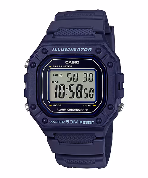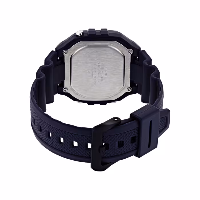 بدنه و بند هر دو از رزین باکیفیت ساخته شدهاند که علاوه بر سبکی، مقاومت بالایی در برابر فشار و ضربه دارند. رنگ آبی این مدل باعث شده W‑218H‑2AVDF نسبت به نسخههای مشکی یا خاکستری سری، شخصیتی شادابتر و مدرنتر پیدا کند.