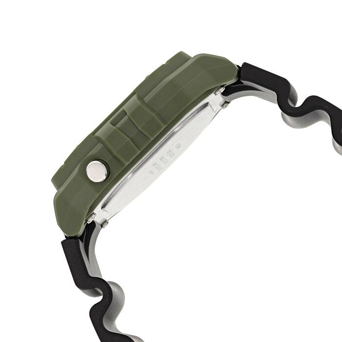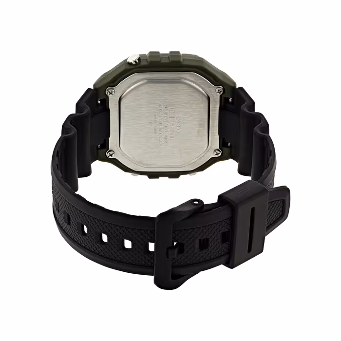 ساعت مچی مردانه کاسیو CASIO W-218H-3AVDF از بدنه و بند رزین ساخته شده است؛ جنسی که شهرت زیادی برای استحکام و سبک بودن دارد. رنگ سبز تیره در قاب و دکمهها، این ساعت را نسبت به مدلهای مشکی یا خاکستری سری، متمایز و خاص کرده است.