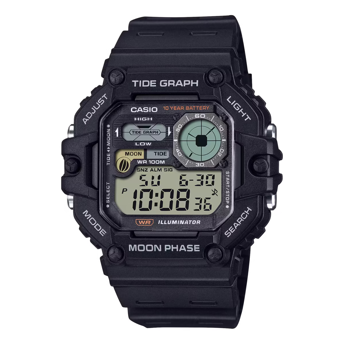 ساعت مچی مردانه کاسیو CASIO WS‑1700H‑1AVDF انتخابی ایدهآل برای آقایانی است که به فعالیتهای دریایی، ورزشی و ماجراجویی علاقه دارند. طراحی پرقدرت و مقاوم این مدل، با قاب رزین مستحکم و بند همجنس، حس اطمینان و دوام را از همان نگاه اول منتقل میکند. صفحهی دیجیتال چندپنجرهای آن نهتنها حس یک گجت حرفهای را دارد، بلکه تمام اطلاعات حیاتی را بهوضوح و با خوانایی بالا نمایش میدهد.